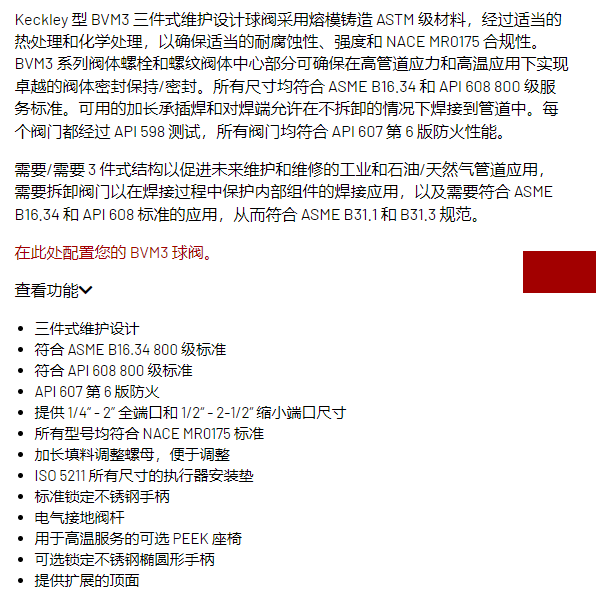 KECKLEY 维护设计球阀BVM3 800 *系列